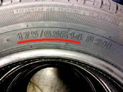「175/65/R14」と書いてあるタイヤだったら、同じ「175/65/R14」のタイヤを買えばいいわけです。